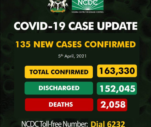 Coronavirus - Nigeria: COVID-19 update (5 April 2021)