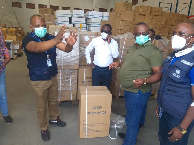 À Goma, le don de World Health Organization (WHO) OMS RDC à la Division provinciale de la Santé pour combattre efficacement le coronavirus. Il s'agit des materiels, équipements [30 concentrateurs d'oxygène] & medicaments pour la prise en charge médicale des patients atteints de COVID-19 au Nord Kivu.