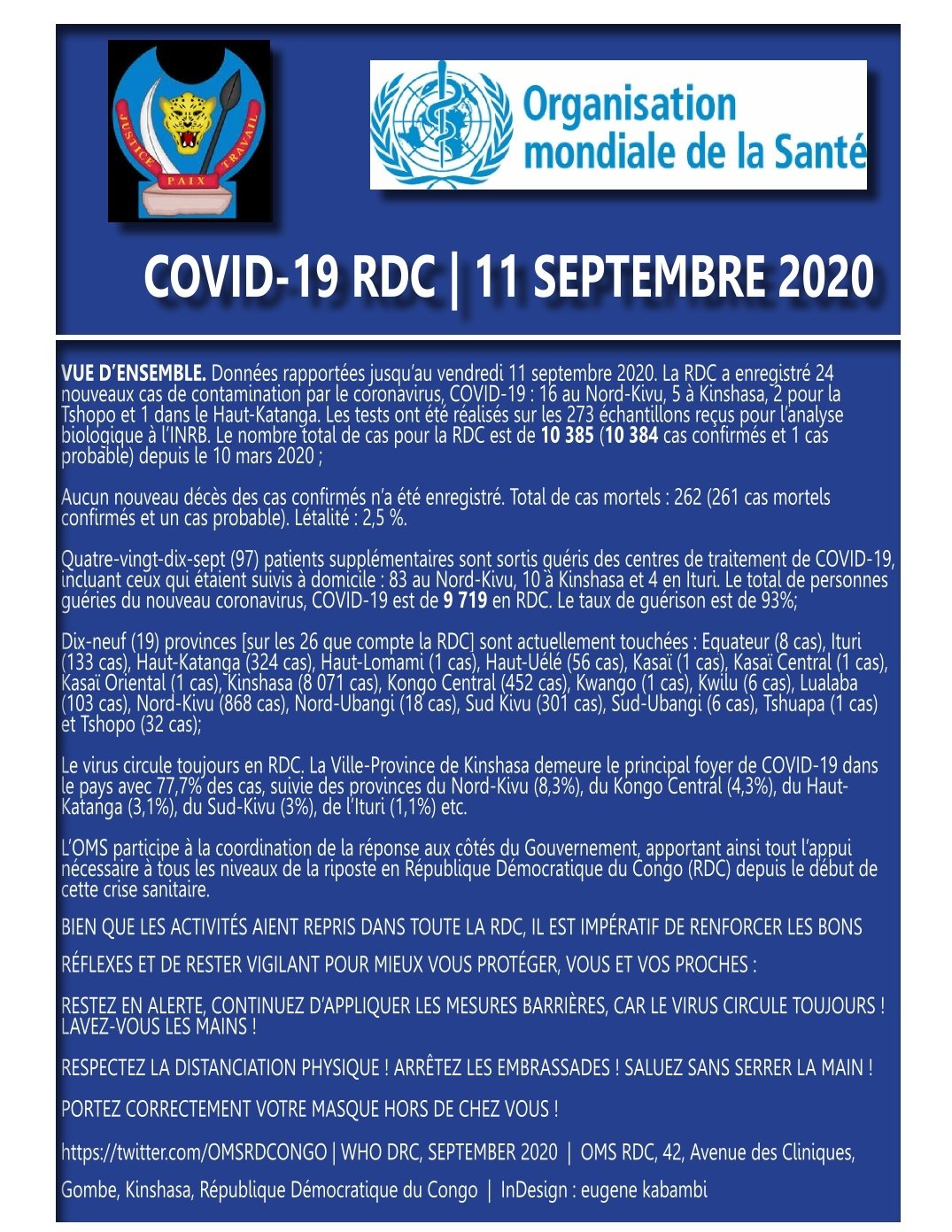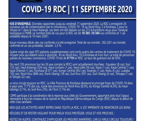 Coronavirus - République Démocratique du Congo : Mise à jour COVID-19 (11 septembre 2020)