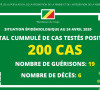 Total cummulé de cas testés positifs : 200
