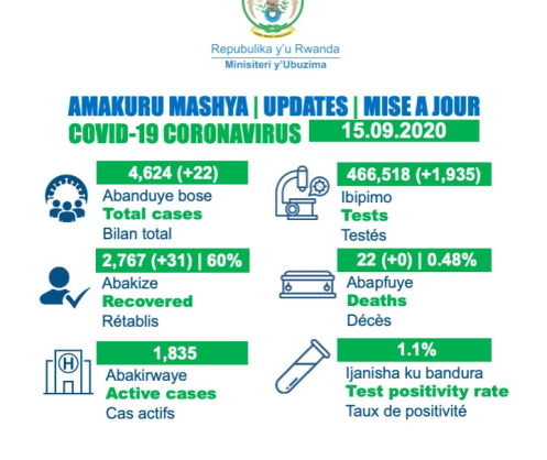 Coronavirus - Rwanda : Mise à jour du cas COVID-19 (15 septembre 2020)