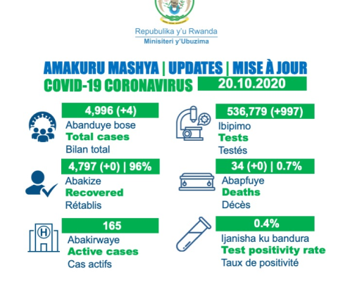 • Coronavirus - Rwanda: COVID-19 case update (20 October 2020)