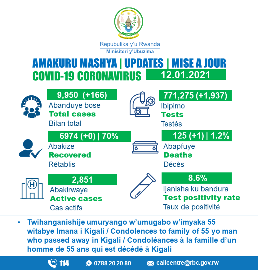 • Coronavirus - Rwanda : mise à jour COVID-19 (12 janvier 2021)