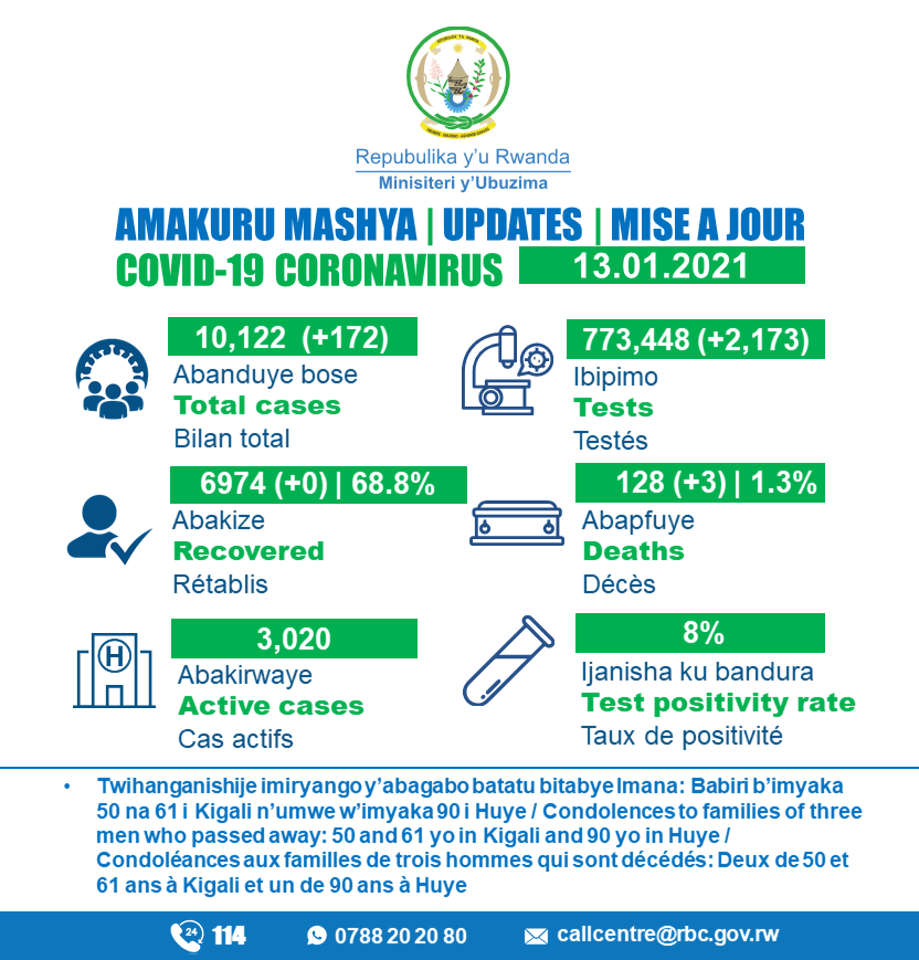 • Coronavirus - Rwanda : mise à jour COVID-19 (13 janvier 2021)