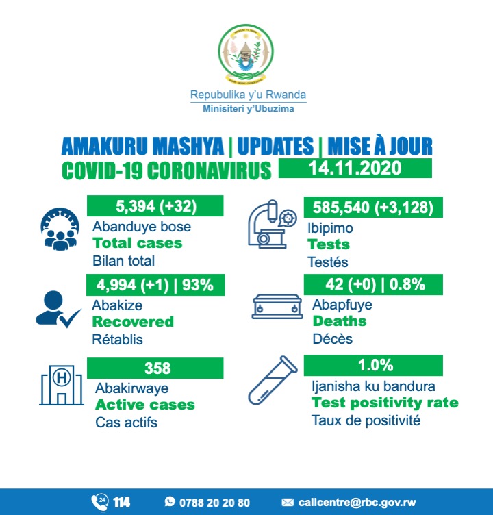 Coronavirus - Rwanda : Mise à jour du cas COVID-19 (14 novembre 2020)