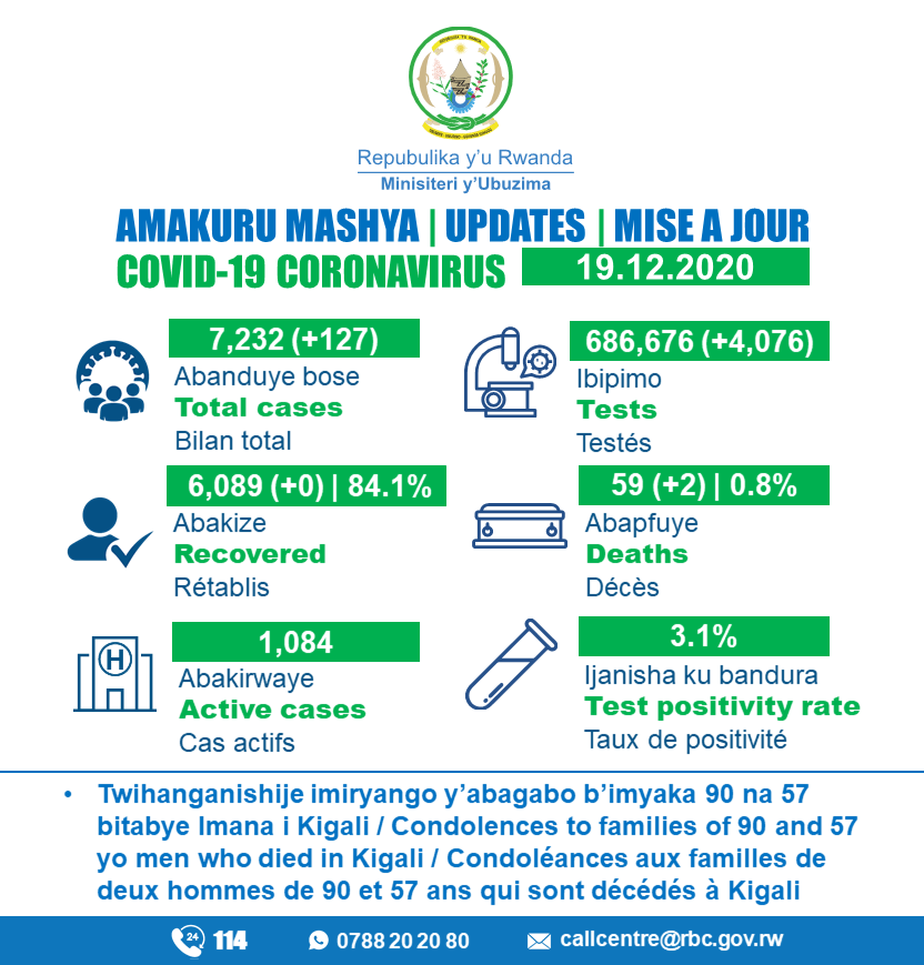 Coronavirus - Rwanda : Mise à jour du cas COVID-19 (19 décembre 2020)
