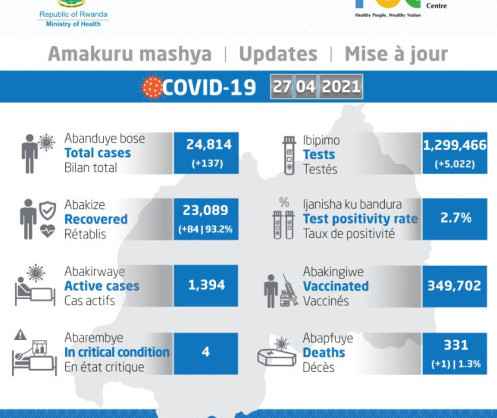 Coronavirus - Rwanda: COVID-19 update (27 April 2021)