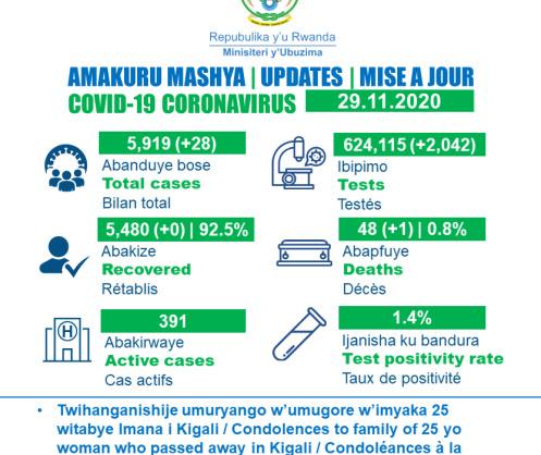 • Coronavirus - Rwanda: COVID-19 update (29 November 2020)