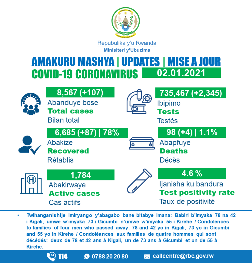 Coronavirus - Rwanda : mise à jour COVID-19 (2 janvier 2021)