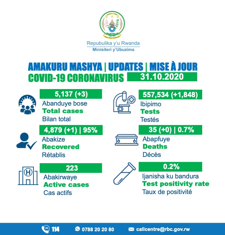 • Coronavirus - Rwanda : Mise à jour du cas COVID-19 (31 octobre 2020)