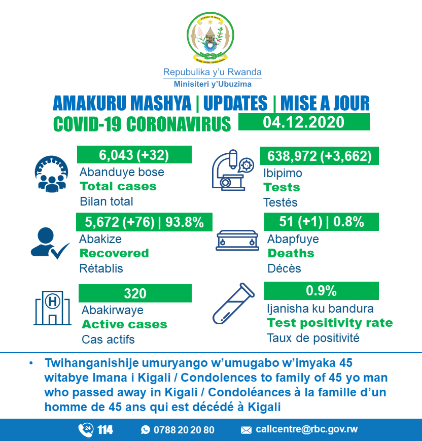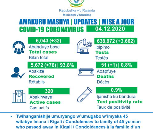 • Coronavirus - Rwanda : Mise à jour du cas COVID-19 (4 décembre 2020)