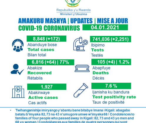 • Coronavirus - Rwanda : mise à jour COVID-19 (4 janvier 2021)