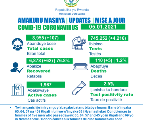 • Coronavirus - Rwanda : mise à jour COVID-19 (5 janvier 2021)