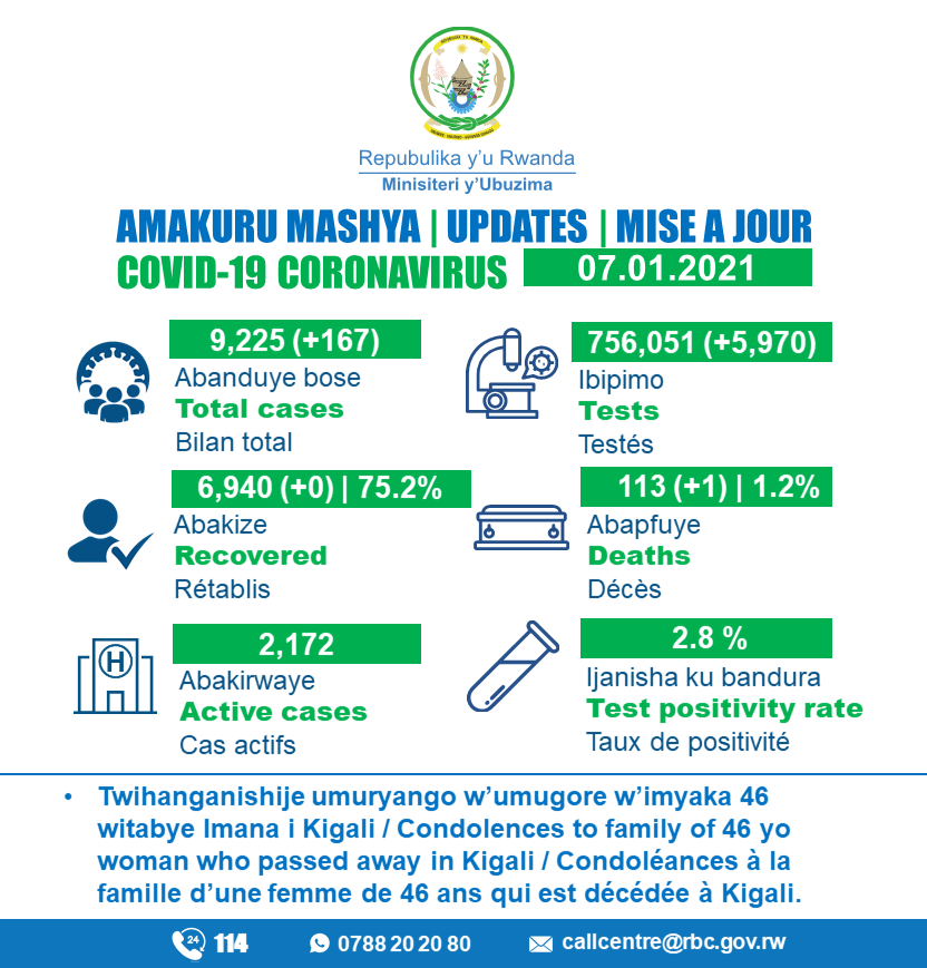 • Coronavirus - Rwanda : mise à jour COVID-19 (7 janvier 2021)