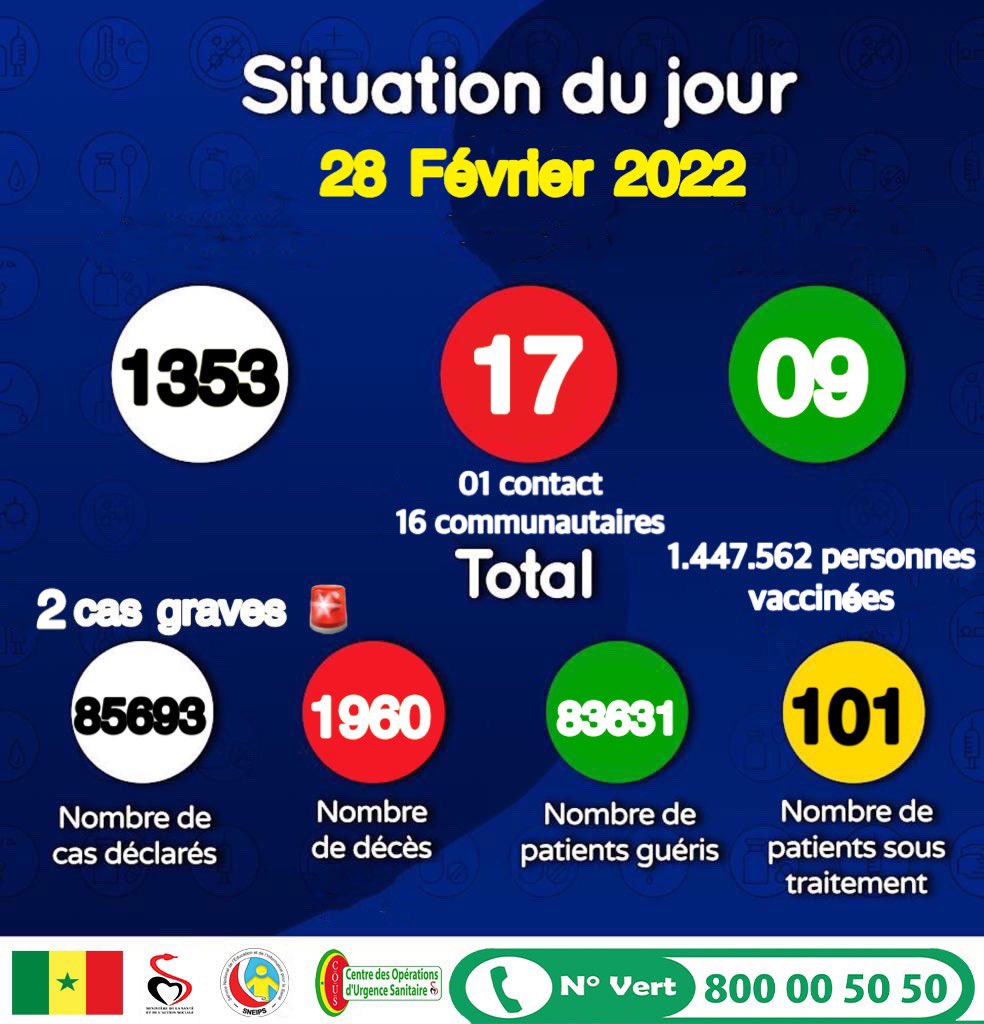 Coronavirus - Sénégal : Situation actuelle de la COVID19 au Sénégal (28 Février 2022)