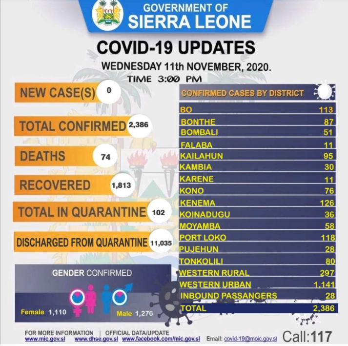 Coronavirus - Sierra Leone: COVID-19 update (11 November 2020)