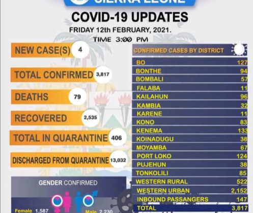 Coronavirus - Sierra Leone: COVID-19 update (12 February 2021)