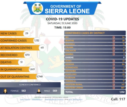 Coronavirus - Sierra Leone: COVID-19 Update 13th June 2020