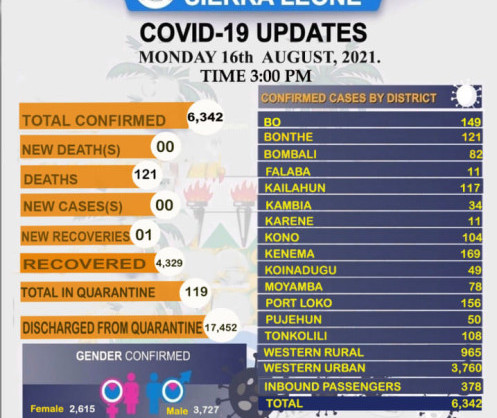 Coronavirus - Sierra Leone: COVID-19 update (16 August 2021)