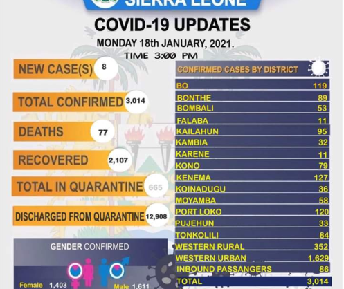 Coronavirus - Sierra Leone: COVID-19 update (18 January 2021)