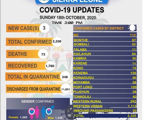 Coronavirus - Sierra Leone: COVID-19 update (18 October 2020)