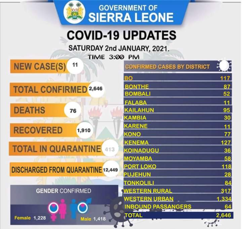 Coronavirus - Sierra Leone: COVID-19 update (2 January 2021)