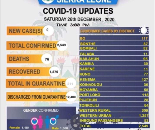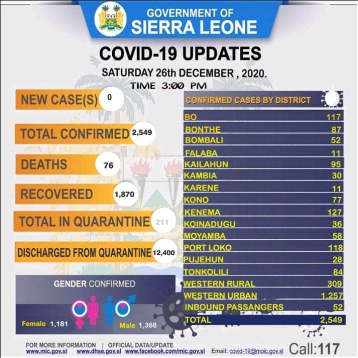 Coronavirus - Sierra Leone: COVID-19 update (26 December 2020)