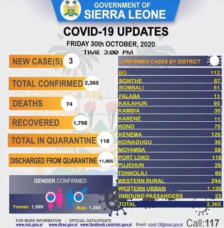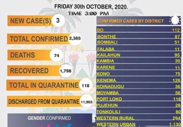 Coronavirus - Sierra Leone: COVID-19 update (30 October 2020)