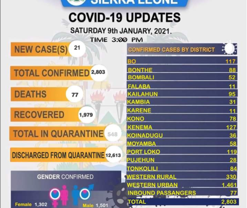 Coronavirus - Sierra Leone: COVID-19 update (9 January 2021)