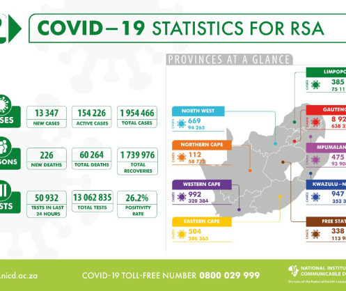 COVID-19 UPDATE: A total of 50,932 tests were conducted in the last 24 hrs, with 13,347 new cases, which represents a 26.2% positivity rate. A further 226 COVID-19 related deaths have been reported, bringing total fatalities to 60,264 to date. Read more: http://ow.ly/eDW650Fl88I.