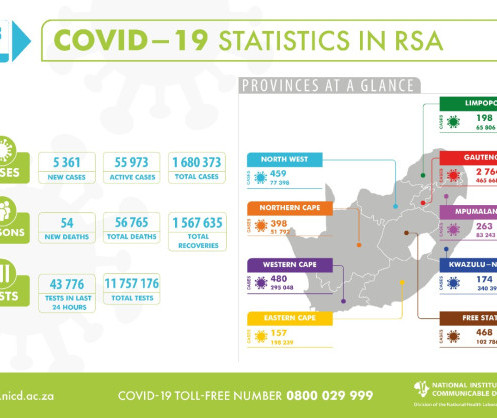 A total of 43 776 tests were conducted in the last 24 hrs, with 5 361 new cases, which represents a 12.2 positivity rate. A further 54 COVID-19 related deaths have been reported, bringing total fatalities to 56 765 to date. Read more here http://ow.ly/3JI150F2tUs.