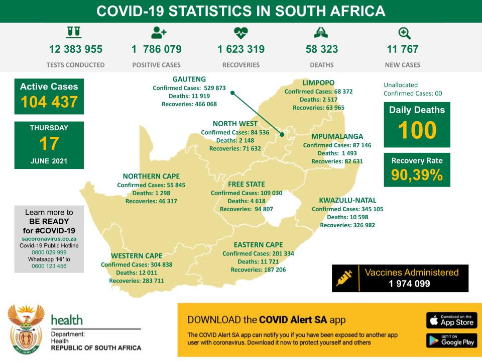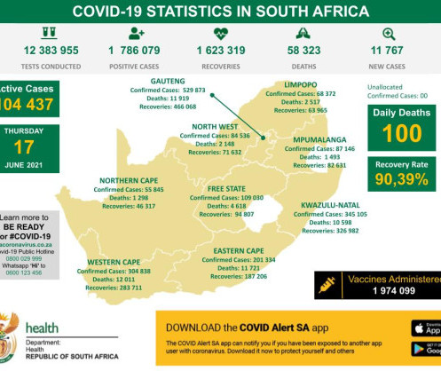 • Coronavirus - South Africa: COVID-19 Statistics in South Africa (17 June 2021)