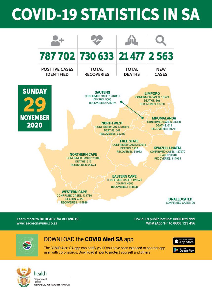 • Coronavirus - South Africa: COVID-19 statistics in South Africa (29 November 2020)