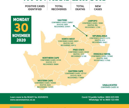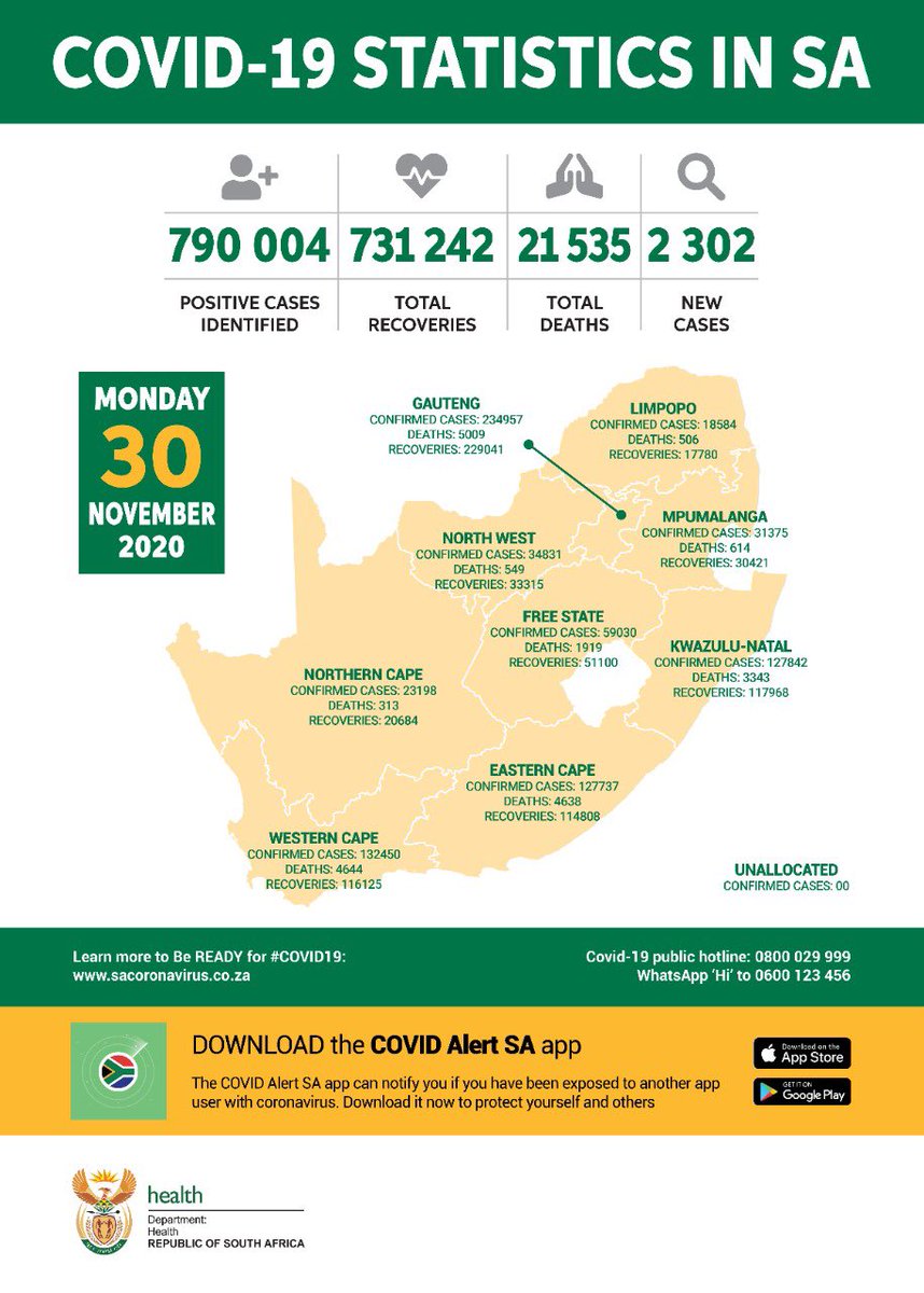 • Coronavirus - South Africa: COVID-19 statistics in South Africa (30 November 2020)