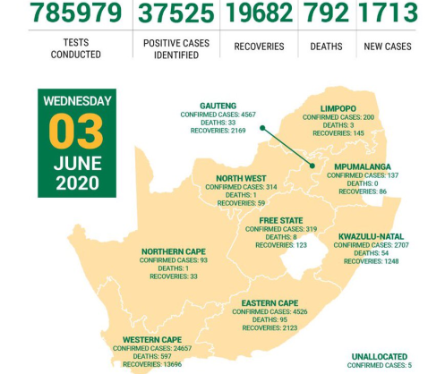 Coronavirus - South Africa: COVID-19 Statistics in South Africa, 3rd June 2020