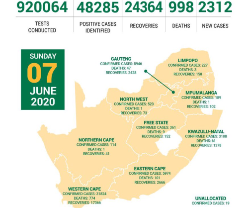 Coronavirus - South Africa: COVID-19 Statistics in South Africa, 7th June 2020