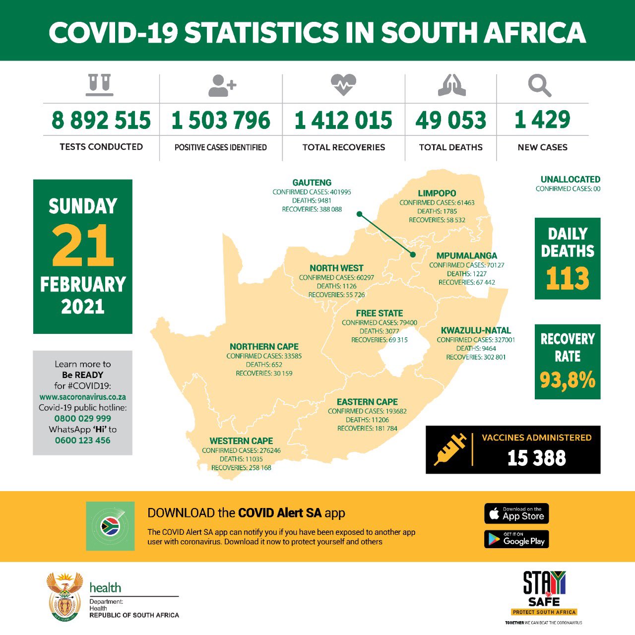 Coronavirus - South Africa: COVID-19 update (21 February 2021)