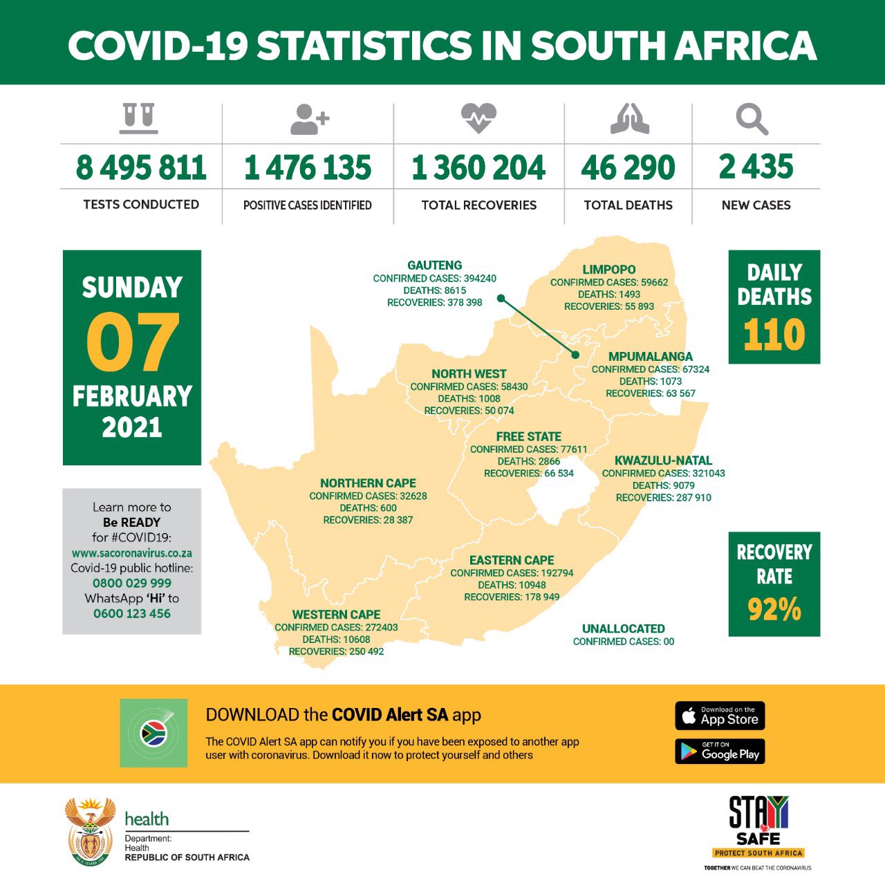 Coronavirus - South Africa: COVID-19 update (7 February 2021)