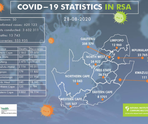 • Coronavirus - South Africa: COVID-19 update for South Africa (28th August 2020)