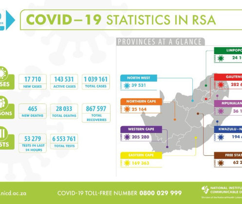 COVID-19 Update: A total of 53279 tests were conducted in the last 24hrs, with 17710 new cases. We report 465 more COVID-19 related deaths, bringing the total number of deaths to 28033.