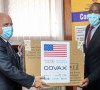 • Dennis W. Hearne makes a symbolic donation of Johnson & Johnson vaccines to the Government of Mozambique, represented by Armindo Tiago, Minister of Health