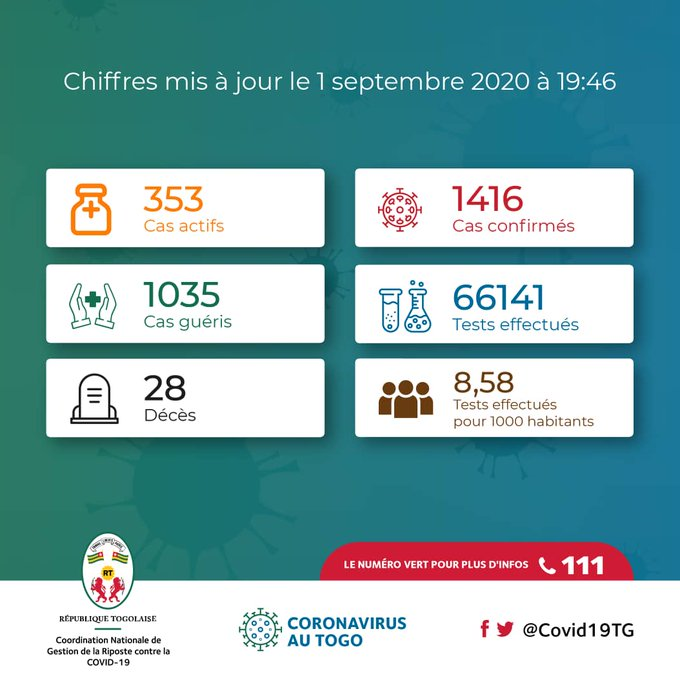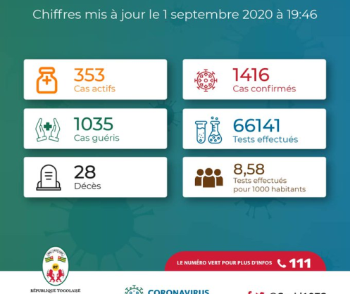 • Coronavirus - Togo : Chiffres mis à jour le 01 septembre 2020 à 19:46