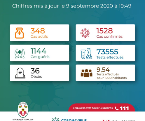 • Coronavirus - Togo : Chiffres mis à jour le 09 septembre 2020 à 19:49
