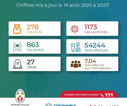 10 nouveaux patients guéris et 19 nouveaux cas confirmés sur les 769 personnes testées ce jour.