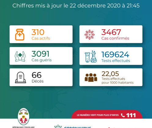 • Coronavirus - Togo : Chiffres mis à jour le 22 décembre 2020