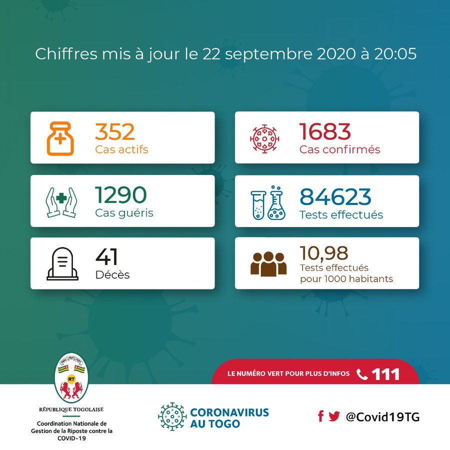 • Coronavirus - Togo : Chiffres mis à jour le 22 septembre 2020 à 20:05