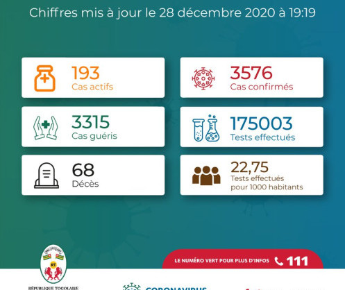 • Coronavirus - Togo : Chiffres mis à jour le 28 décembre 2020