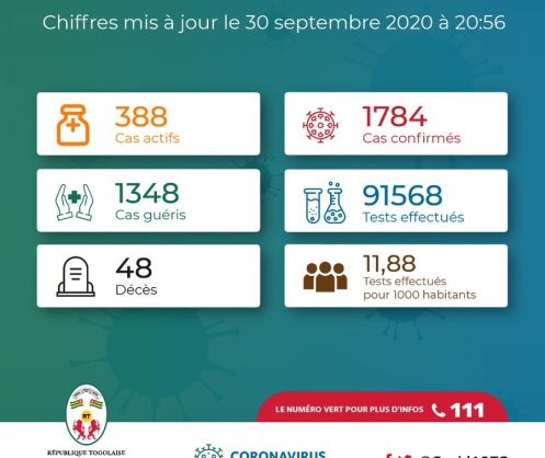 • Coronavirus - Togo : Chiffres mis à jour le 30 septembre 2020 à 20:56