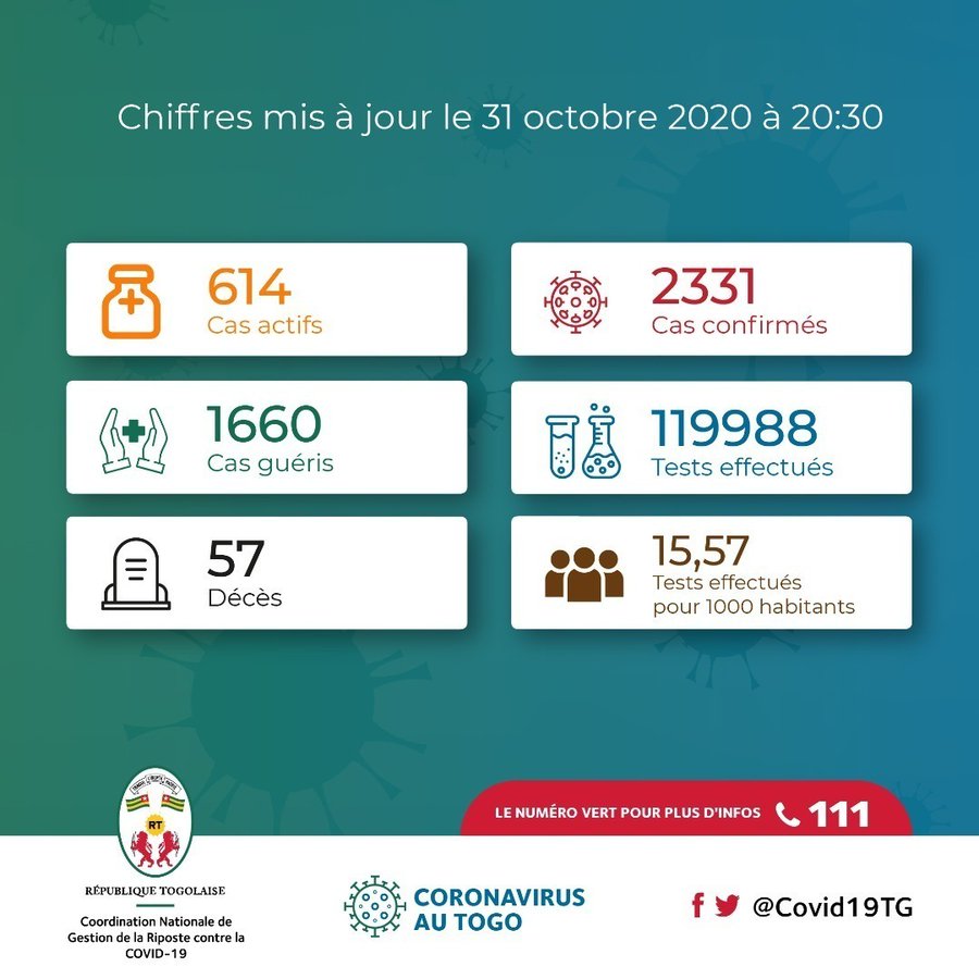 • Coronavirus - Togo : Chiffres mis à jour le 31 octobre 2020