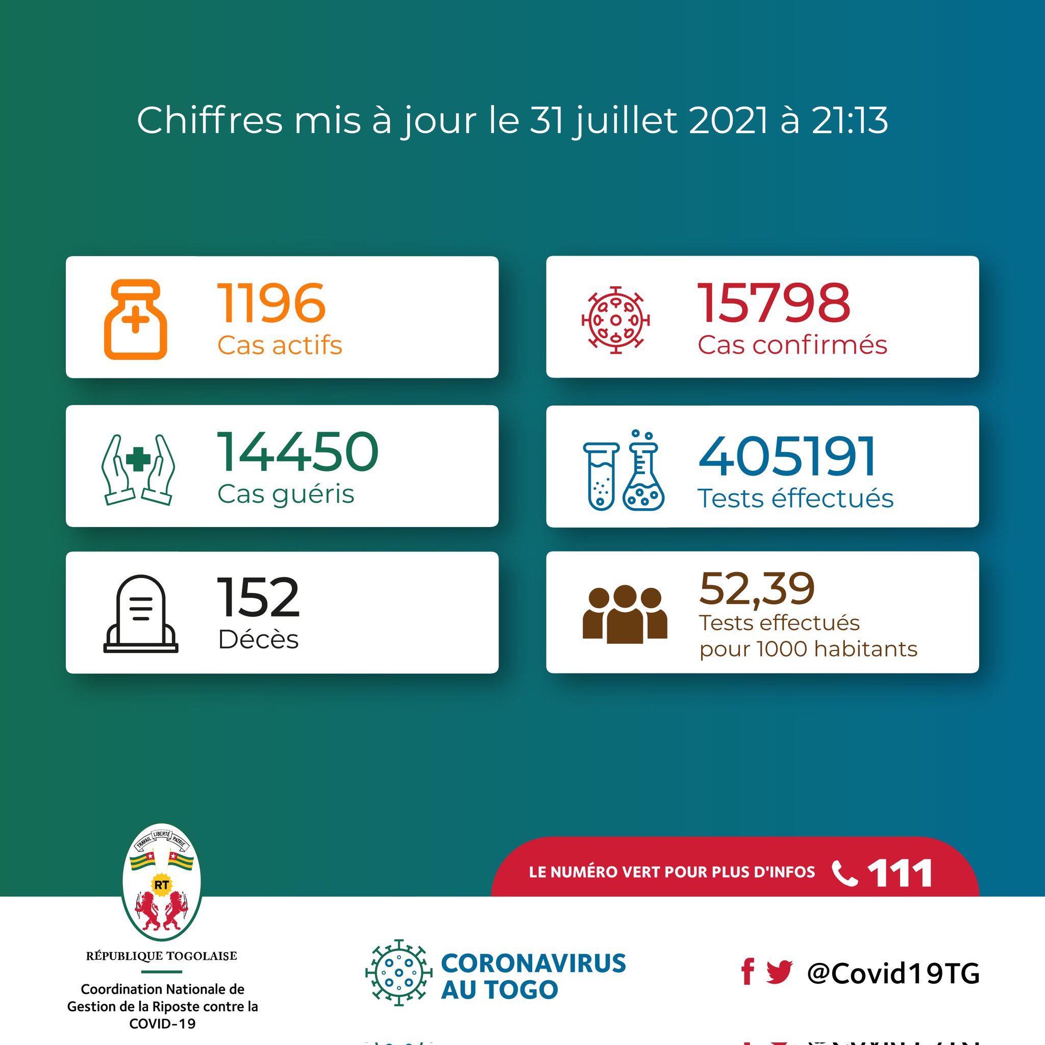 • Coronavirus - Togo: Chiffres mis jour à le 31 juillet 2021